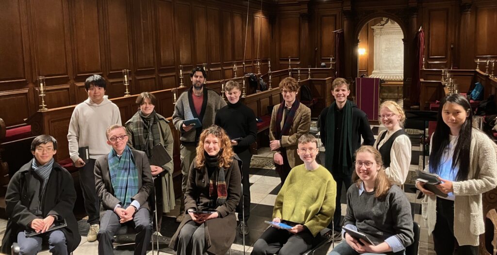 THE CAMBRIDGE EARLY MUSIC CONSORT (CEMC) was founded in 2022 by Matthew Gouldstone and Edward Wickham. The principal ambition of the ensemble is to engage Cambridge University’s finest singers in vocal repertoire pre-1530 which they might not otherwise have encountered through their college choirs. In that respect, CEMC complements and builds upon the training that Cambridge choral scholars already receive, introducing students to a wide variety of approaches; from specific historic performance practices to the fundamentals of research, rehearsal and presentation. In its first three years, CEMC has worked on repertoire ranging from Trecento madrigals to Machaut’s Le Voir Dit; from English mass music of the 15th century to works by Josquin Desprez and Antoine Brumel.