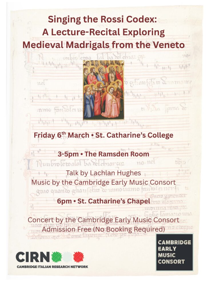 As part of its remit to bring together scholarship and performance, CEMC organise weekly presentations and termly study days/symposiums to which we invite distinguished scholars from beyond Cambridge.